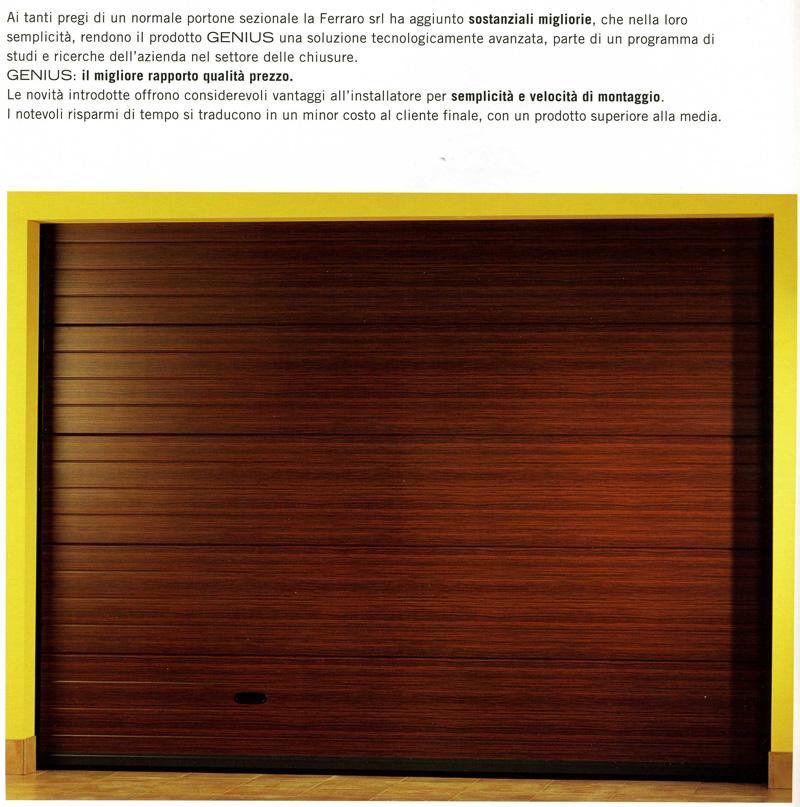 Sono la linea più elegante per la chiusura del garage. Nascono di serie con coibentazione interna e con sistema di sicurezza antischiacciamento. Anche le sezionali sono realizzate tutte su misura, le verniciature sono Ral o effetto legno.