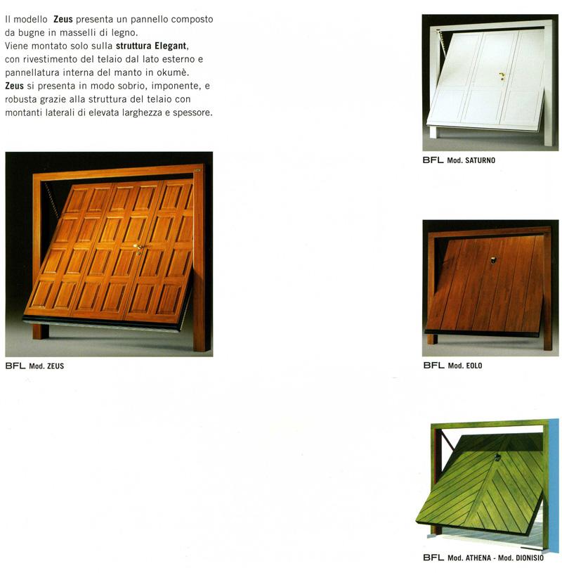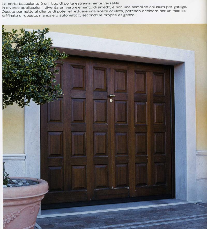 Sono le tradizionali porte per garage, forti e sicure, verniciate Ral, rivestite di legno o tutte in legno; sono realizzate su misura con funzionamento manuale o automatico