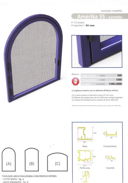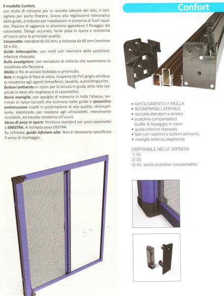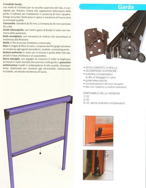 La rete può essere tradizionale o plissettata, varie tipologie certificate anche contro i pollini per le allergie e per i più ricercati la plissettatura può avere varianti nel colore della rete e dei profili.